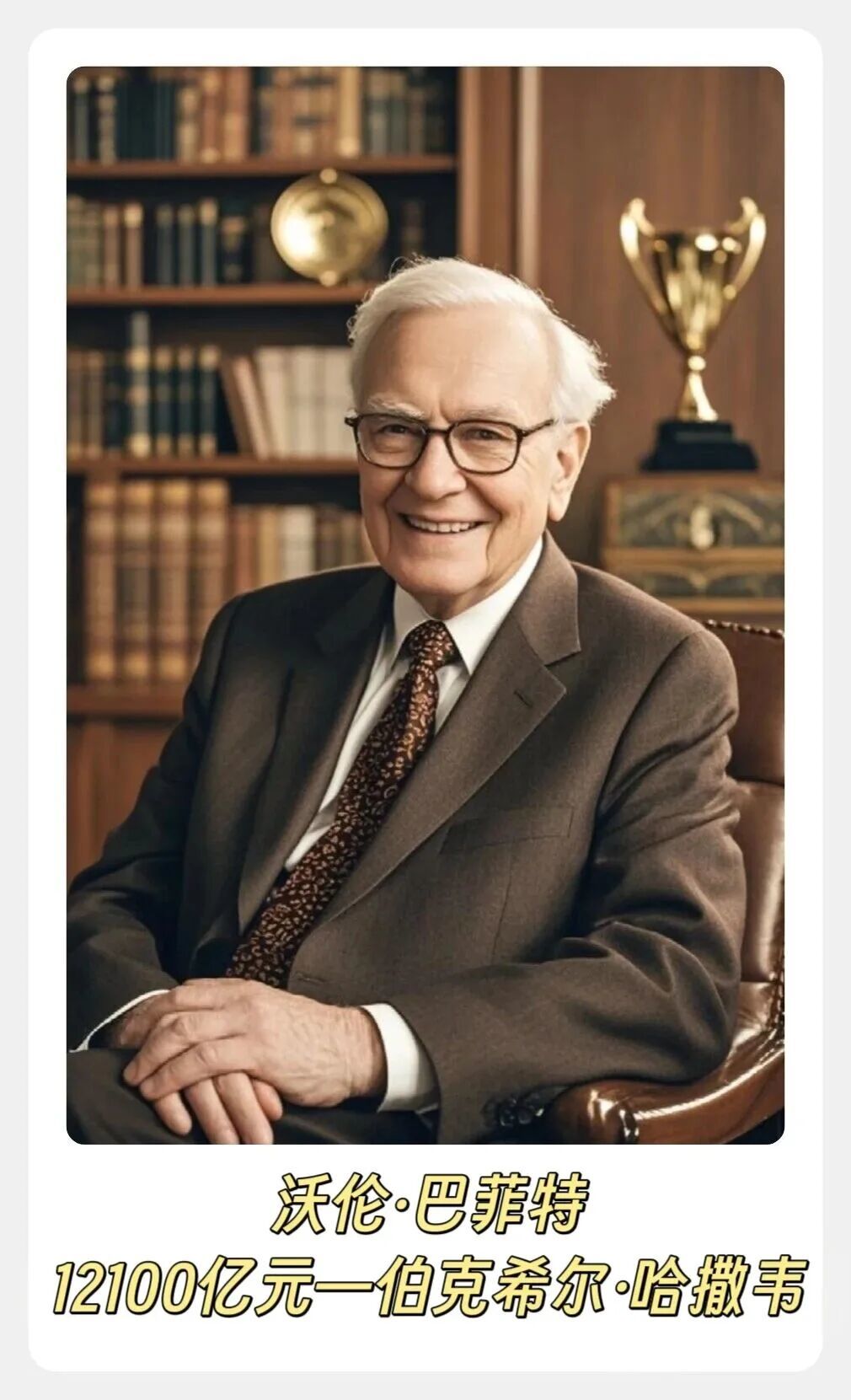 1、沃伦·巴菲特—95岁—12100亿元人民币—伯克希尔·哈撒韦